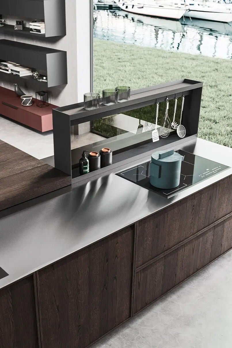A luxury kitchen, where mathematical precision turns into everyday poetry. Its modern peninsula explores the concept of beauty through fine materials and architectural compositions in which each element follows the rhythm of perfection.