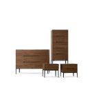 Gala is a line of design bedroom furniture inspired by Salvador Dali’s wife and muse, Gala. The collection includes a chest of drawers, highboy and bedside table with a sober and clear appearance. The large, rectangular structure elegantly retains the drawers on which a discreet recessed handle is a sophisticated decorative and functional element. The material that best sums up Gala is wood: specifically, the warm, reassuring colour of the Canaletto walnut enables these accessories to be incorporated perfectly in numerous stylistic contexts. The base raises the structure from the ground, giving a sense of momentum and lightness. The Gala bedside tables are available in two heights and it is possible to choose one drawer or two handy drawers.