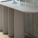 The base features four teardrop-shaped legs, both chunky and sleek and tapered all at once. As such, your perception of the weight of the piece changes as you move around it.