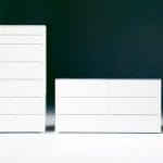 Enea is a series of different chest of drawer units for the bedroom. The table top and drawer front panels are in tempered lacquered glass in white, ivory, coffee, dark brown or green, with the rest of the cabinet in matching wood finish. The drawers all feature a soft close mechanism.