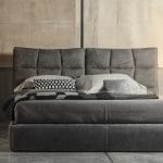 Eva Due is a bed with a new, contemporary and attractive style. Its shapes are softened by sinuous and comfortable curves, which ensure the utmost comfort. The undulating headboard is embellished with a soft and padded tufted pattern. In addition, an internal mechanism allows it to be lowered in order to adapt to all aesthetic and comfort requirements.