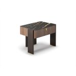 The set consisting of the Julian dresser and bedside tables allows you to daydream as soon as you cross the threshold of the sleeping area. The designers offer a refined composition of materials in which wood, ceramic and steel come together to create a unique design bedside table and a modern chest of drawers with an unforgettable allure.