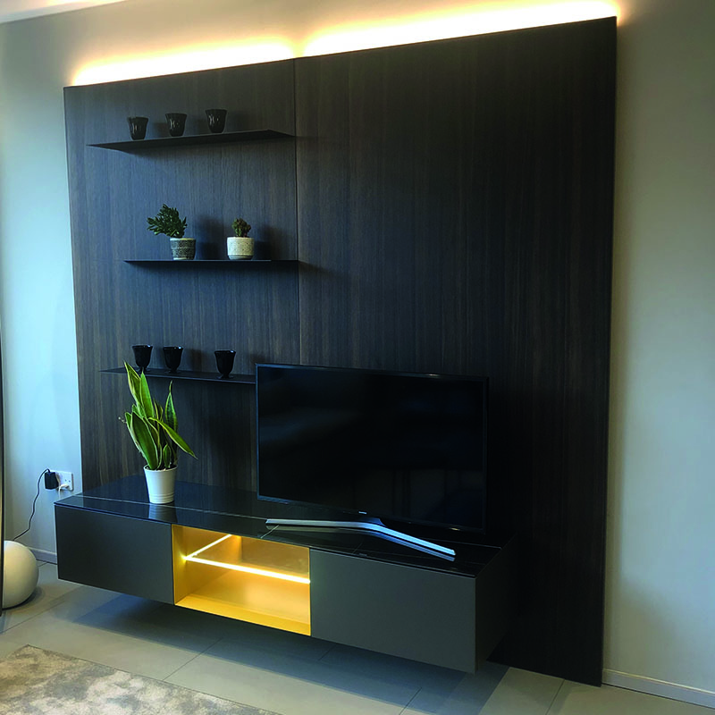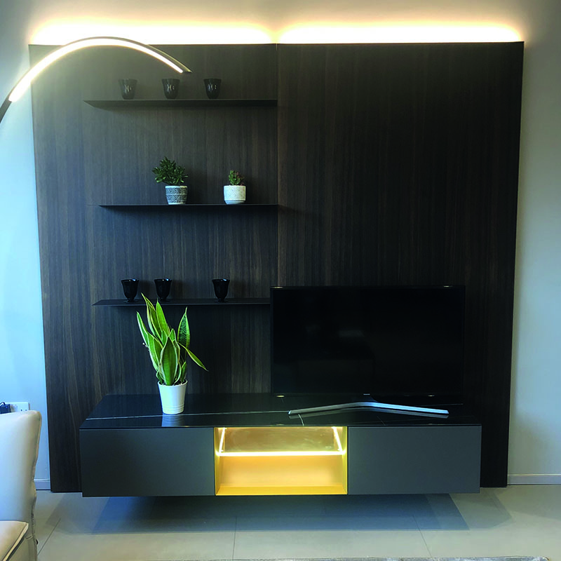 Upgrade your living space with this luxury wall-mounted TV unit composition, a stunning ex-display piece showcasing contemporary Italian-inspired design and premium craftsmanship.