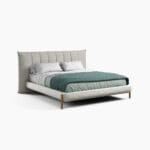 The Groove bed, designed by Silvia Prevedello, merges two elements that differ in their lines and looks to produce a harmonious, contemporary whole. The large padded headboard, with vertical stitching giving the shape a softer look, is connected to a pared-back bed surround, sitting on slim, elegant legs for a light feel.