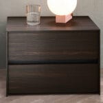 Modern stylish Pitagora bedside cabinet with simple line with a metal profile in between the drawers available in a wide choice of colours. Click here to view the online swatches. Matching drawer and tall chest of drawers is also available. See below.